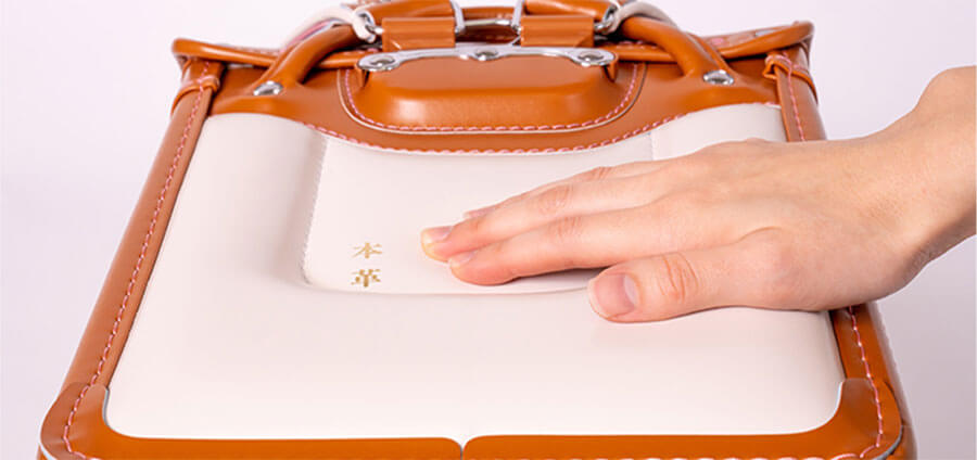 フジタのランドセルは全てのシリーズで背当てに「ふっくら天然牛革」を使用。