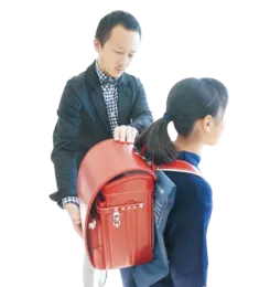 ランドセルを背負いはじめの頃は、肩 と背中と腰にまばらに重さ( 負荷) が 分散しています。成長と共にからだの凸 凹の位置が少しずつ移動して、ランドセルに負荷がかかる位置も移動します。 負荷が大きい位置の背あての天然牛革は伸びて、負荷が小さいところの天然牛革は元にもどり、背あて全体が背中を包み込み、いつもと同じ感覚「安心感」を与えてくれます。 それらが総じて「なじむ」になると思います。まさにお子さまと一緒に育っていくランドセルといえます。